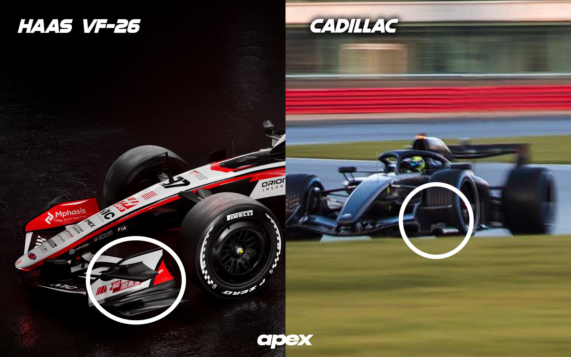 Based on this, and also the front wing (specifically the endplates), at this stage the Haas seems most similar to the Cadillac which was tested out on track at Silverstone last week.