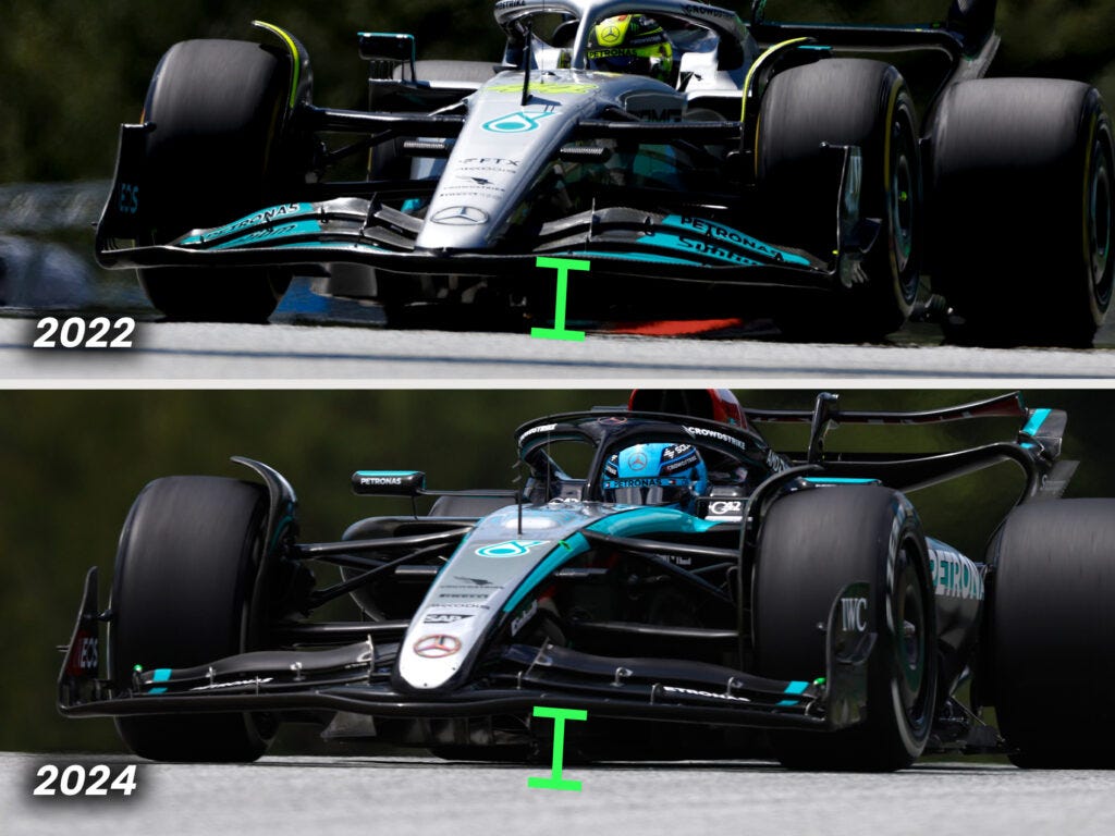 It’s no secret that Mercedes had struggled with balance and driveability of their cars since the 2022 regulations came in, also suffering the most of any team with porpoising and bouncing in the early phase of the regulations.
