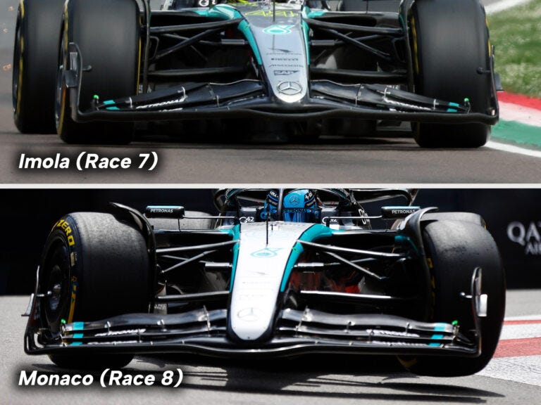 The Monaco wing changes were seemingly a different way of addressing the same problem, reducing the rear instability but keeping load on the front through corners. And Andrew Shovlin, Mercedes’ trackside engineering director, revealed that the upgrade was “delivering performance” and “a benefit in terms of how the car was feeling” – both signs that it was a better route to go down than the initial concept.