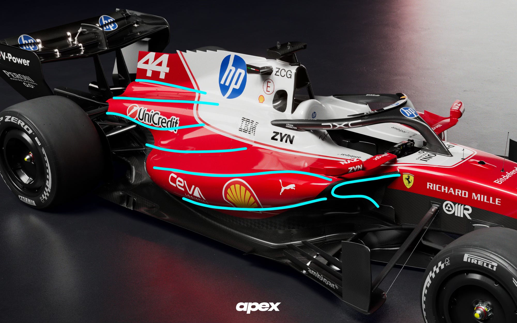 The airbox of the SF-26 is unlike anything we’ve seen from other teams who’ve unveiled early concepts so far given not only its triangular shape, but also small size that will presumably provide minimal cooling flow.