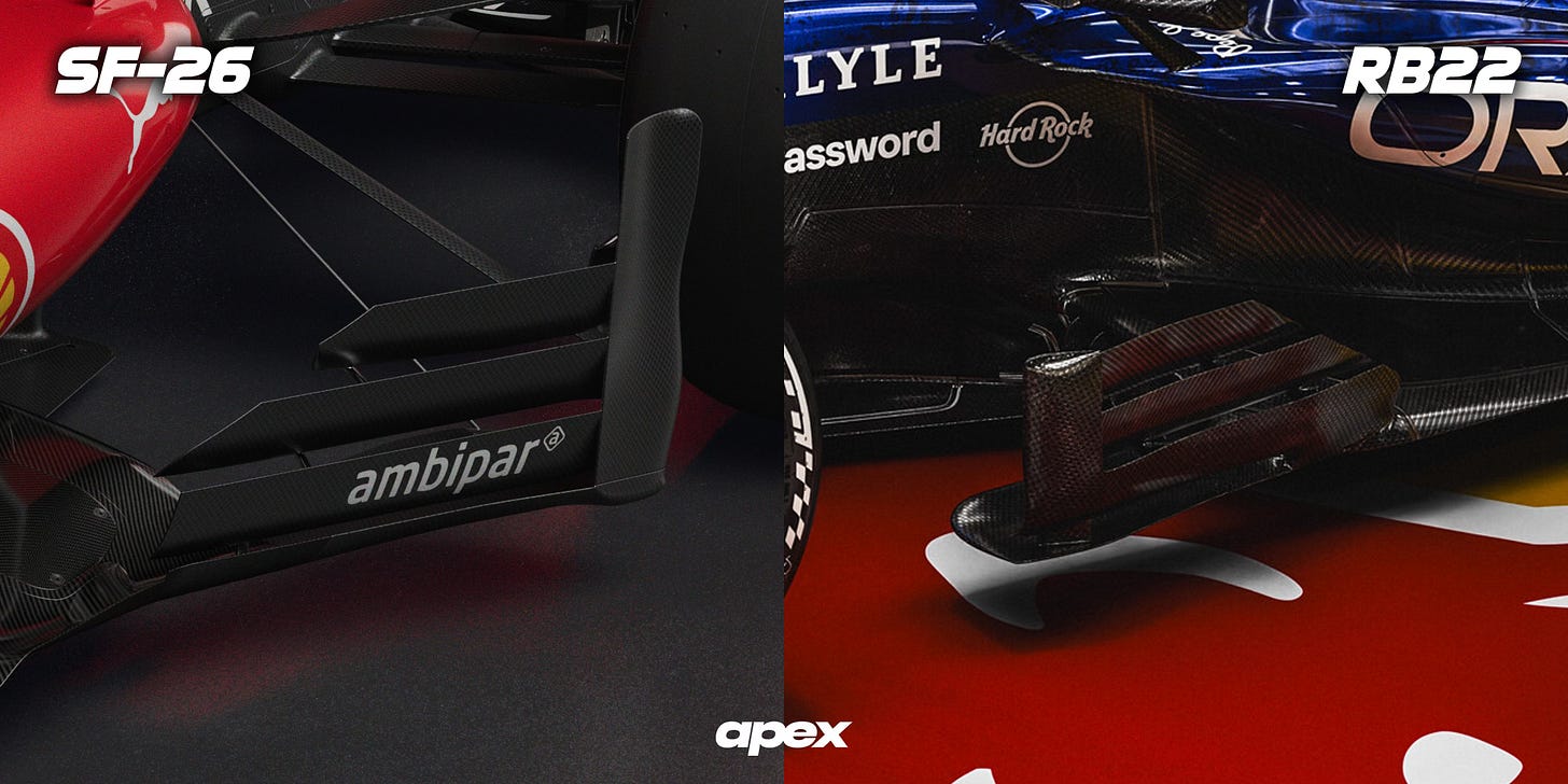 The ‘bargeboard’ itself takes a similar shape to Red Bull’s with horizontal elements joining a single vertical strake at the front, but the SF-26’s is much taller - taking up most if not all of the height allowed by the regulations.