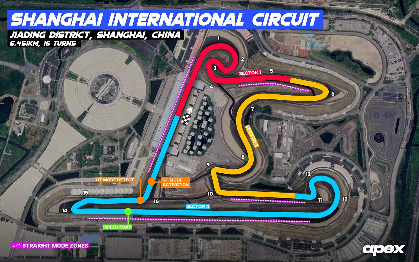 In addition to the straight mode zones, the new for this year overtake detection and activation points will come into and out of the final corner, turn 16.