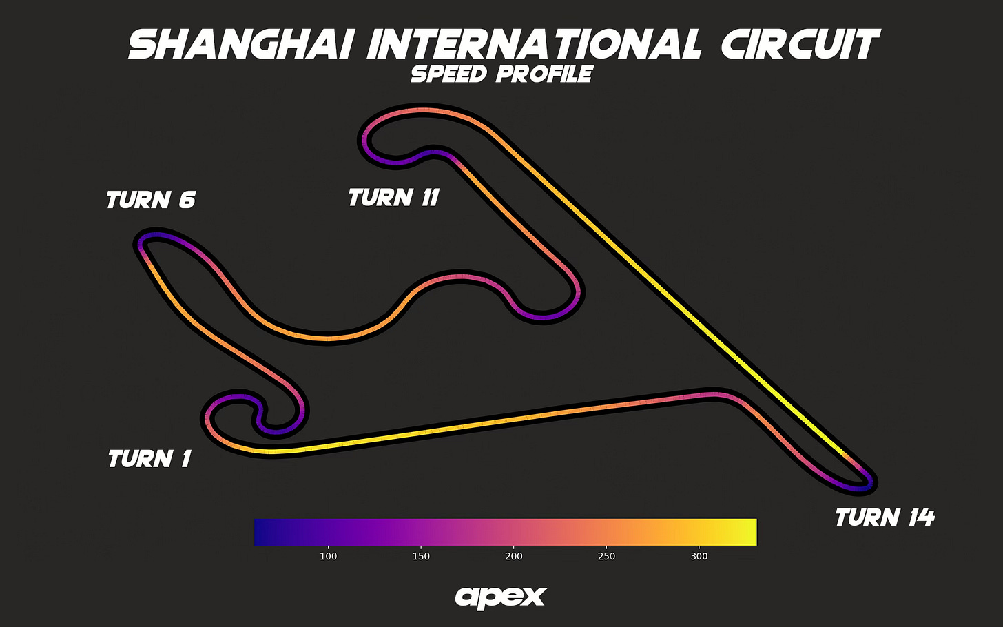 The lap of Shanghai features a couple of braking zones that see the drivers, at least in the last era of car, drop from speeds north of 300km/h down to under 100km/h. Given that this year these are out of straight mode zones, that top speed could be higher again.